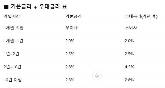 - 가입 기간이 2년 이상일 때 우대금리를 제대로 받을 수 있습니다.
