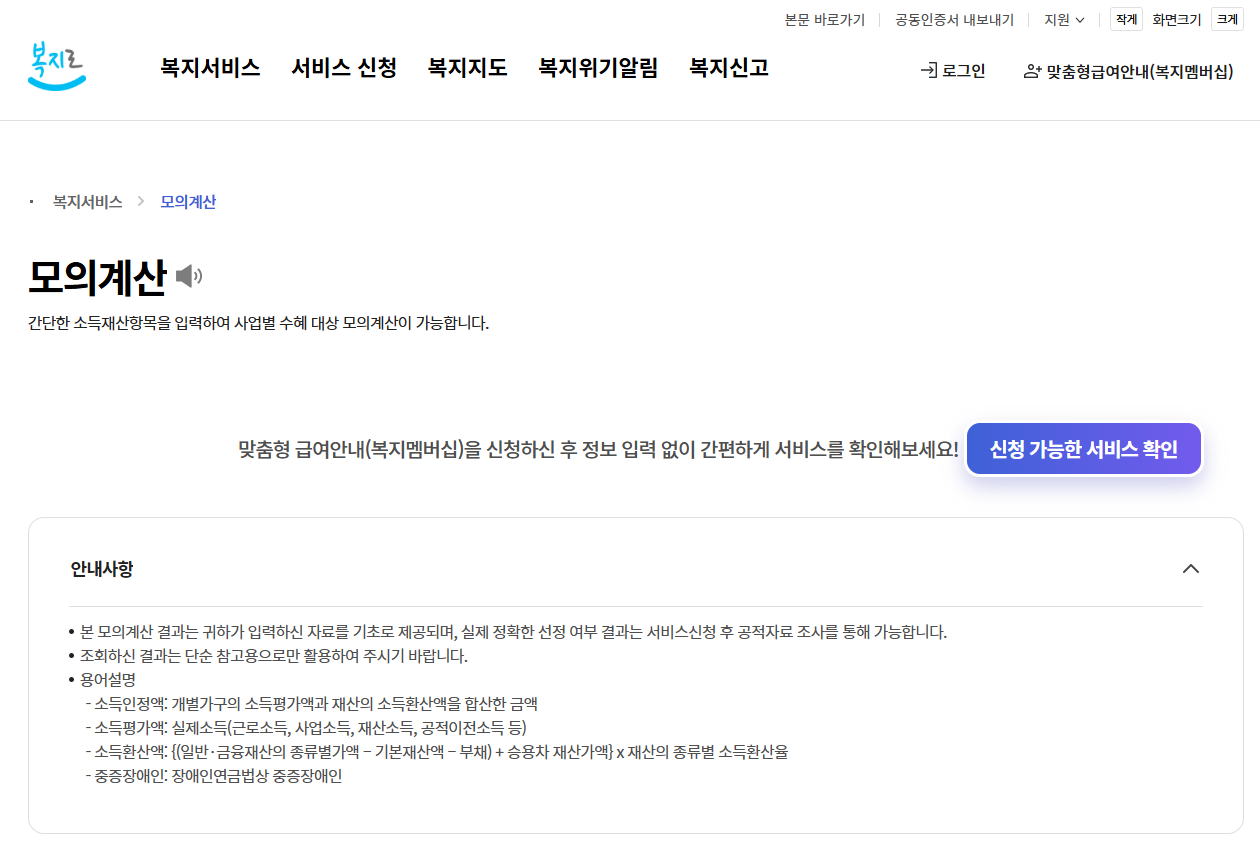 가장 정확한 방법은 거주지 행정복지센터 방문 상담이며, 복지로 사이트를 통해서도 모의 계산과 신청이 가능합니다.