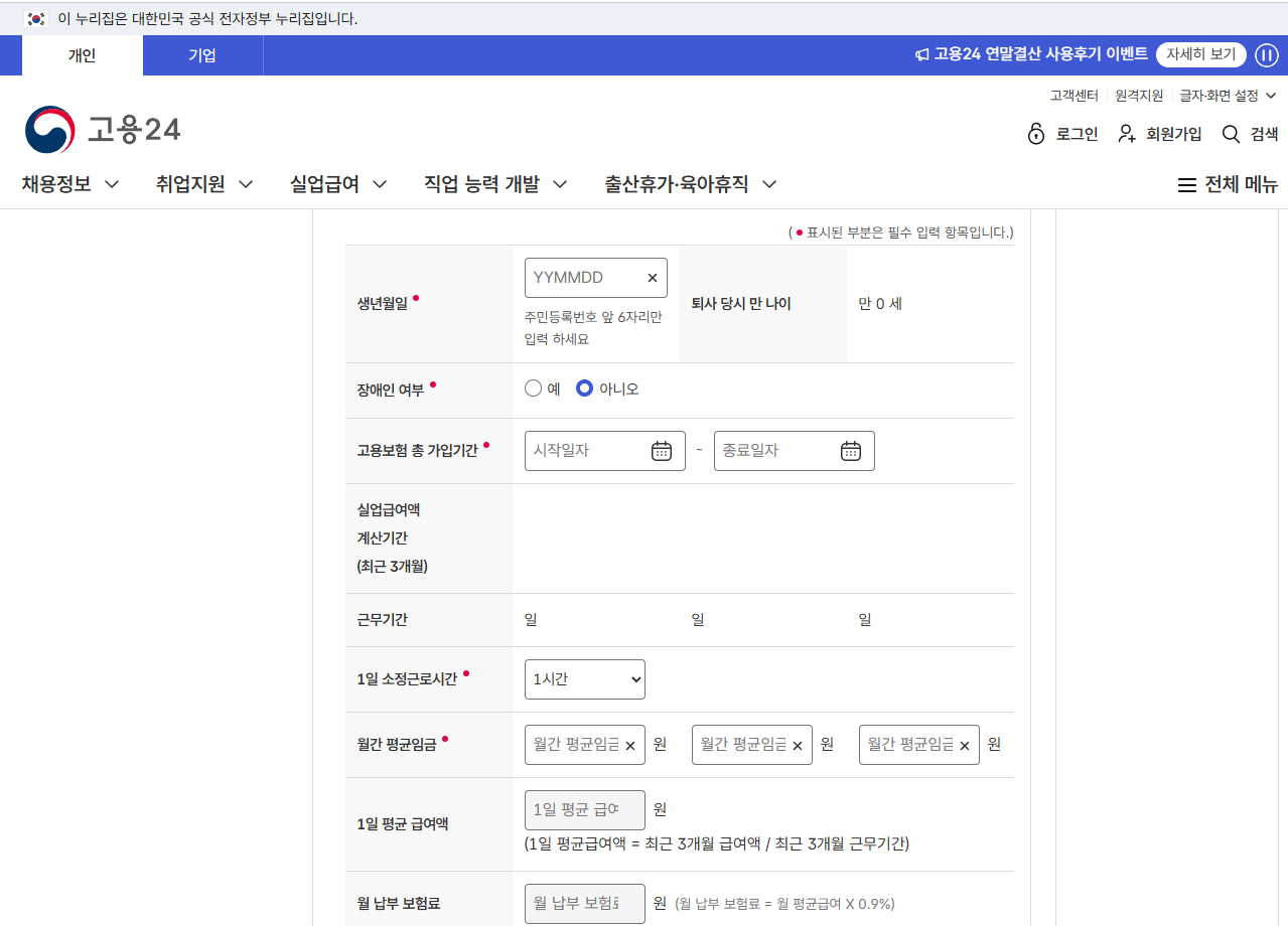 고용24 모의계산기