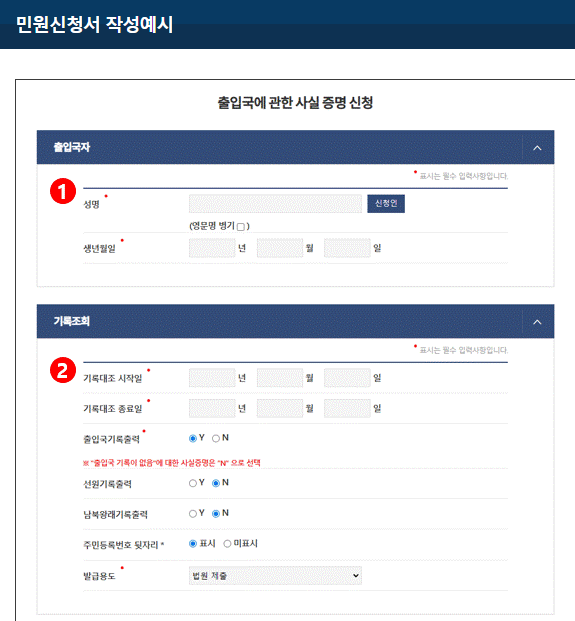 출입국사실증명서는 원하는 기간을 직접 설정해야 하므로,